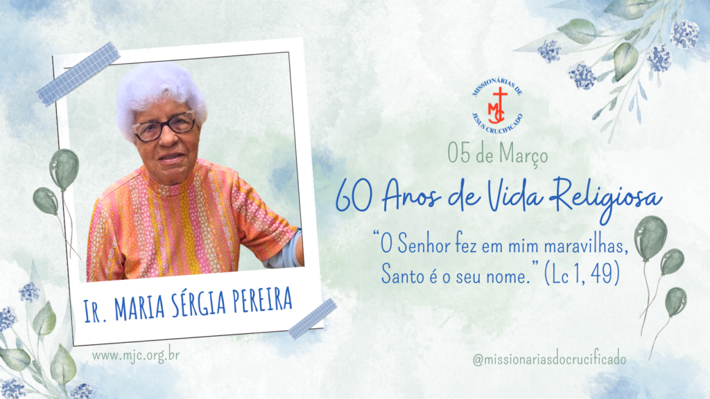 Hoje damos graças a Deus pelos 60 anos de Vida Religiosa da querida Irmã Sérgia Pereira da Rocha, Missionária de Jesus Crucificado.