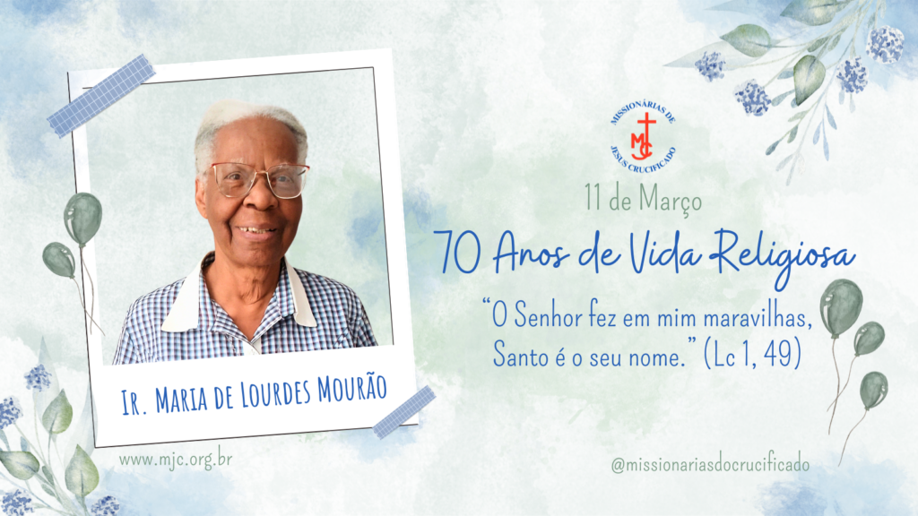 Hoje celebramos com alegria e gratidão os 70 anos de Vida Religiosa da Irmã Maria de Lourdes Mourão, Missionária de Jesus Crucificado.