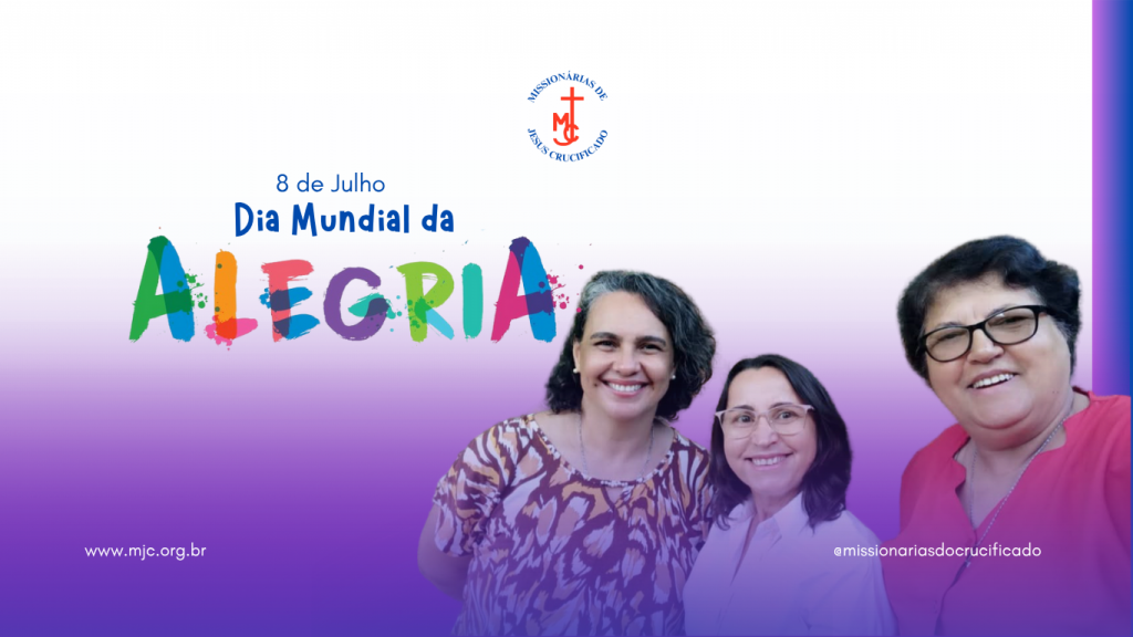 O dia mundial da Alegria é comemorado, em todos os países, no dia 8 de julho. Para nós Missionárias de Jesus Crucificado, a alegria é um características da nossa Espiritualidade e Identidade. É fruto do Espírito Santo (Gl 5,22). Mais que um sentimento, é uma inteligência forjada e conjugada com outras: paz, paciência, bondade, generosidade, fé, humildade.