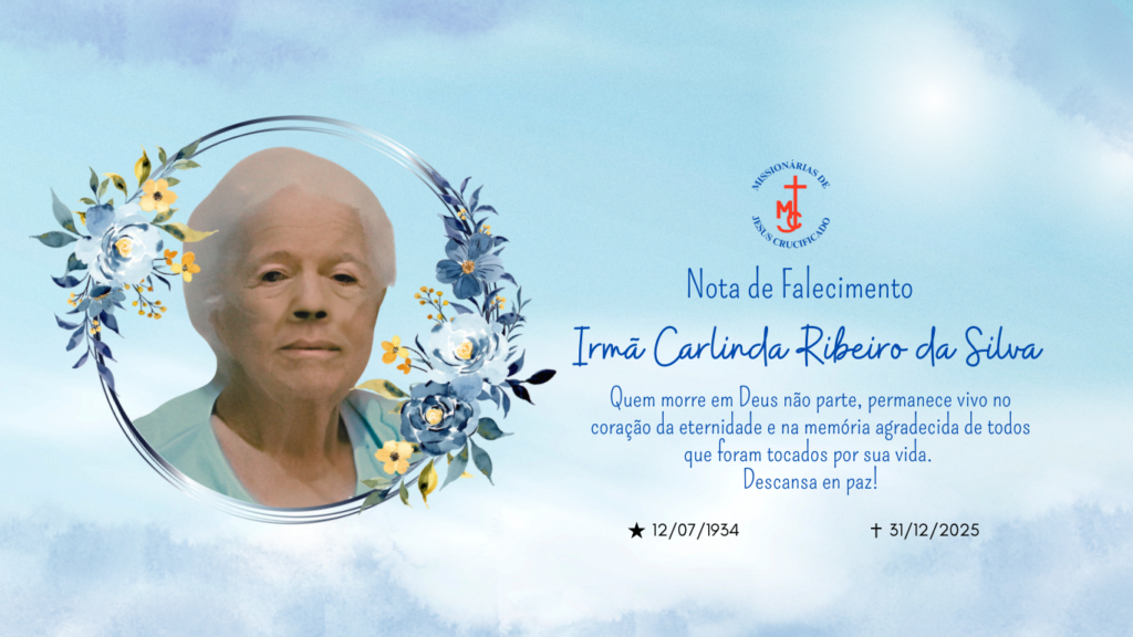 Com profundo pesar e esperança na Ressurreição, comunicamos o falecimento da Irmã Carlinda Ribeiro da Silva, Missionária de Jesus Crucificado.